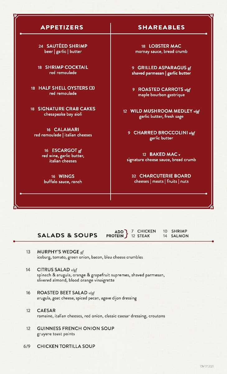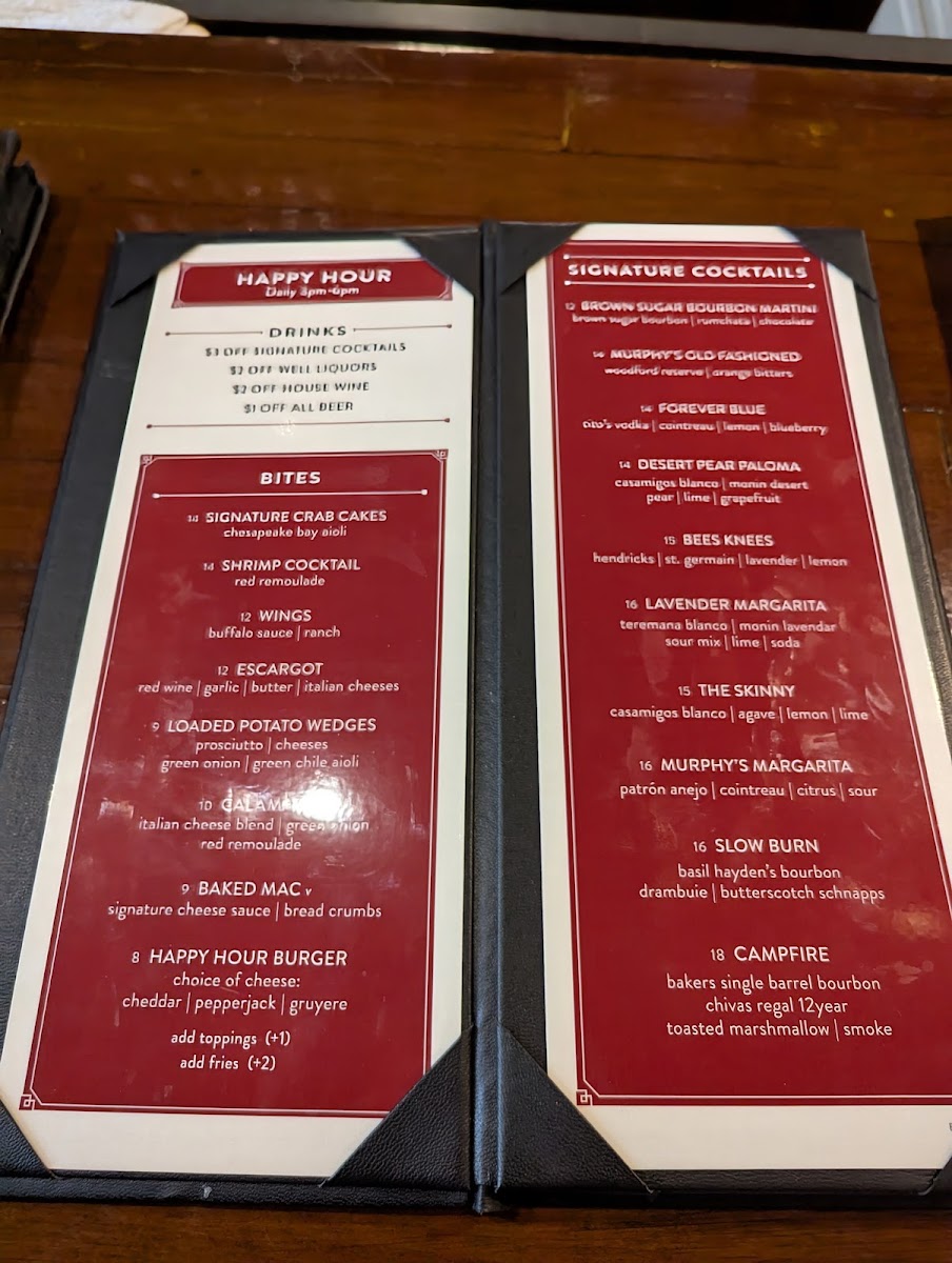 Murphy's Restaurant Menu